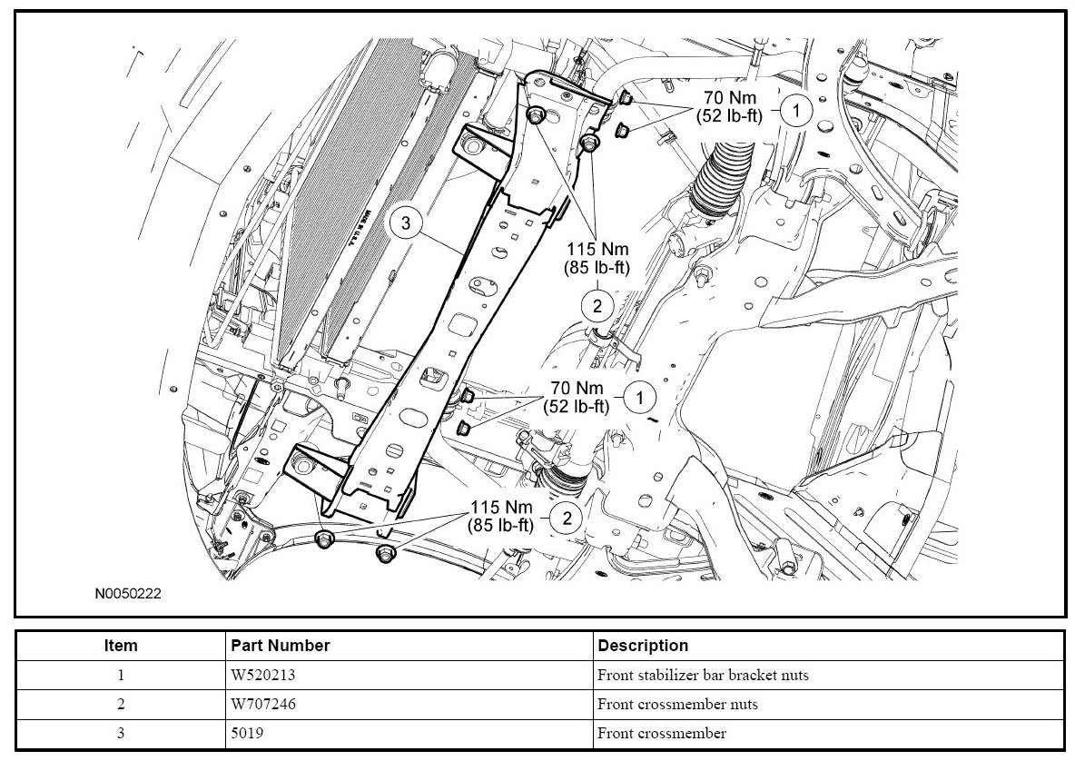 2. If equipped, remove the crossmember brace. For additional information, refer to Crossmember Brace - Exploded View.
