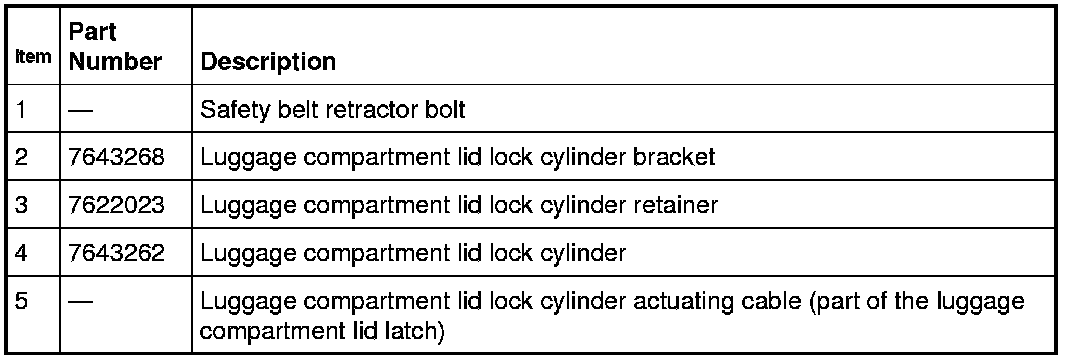 3. Disconnect the luggage compartment lid latch actuator cable from the luggage compartment lid lock cylinder.
