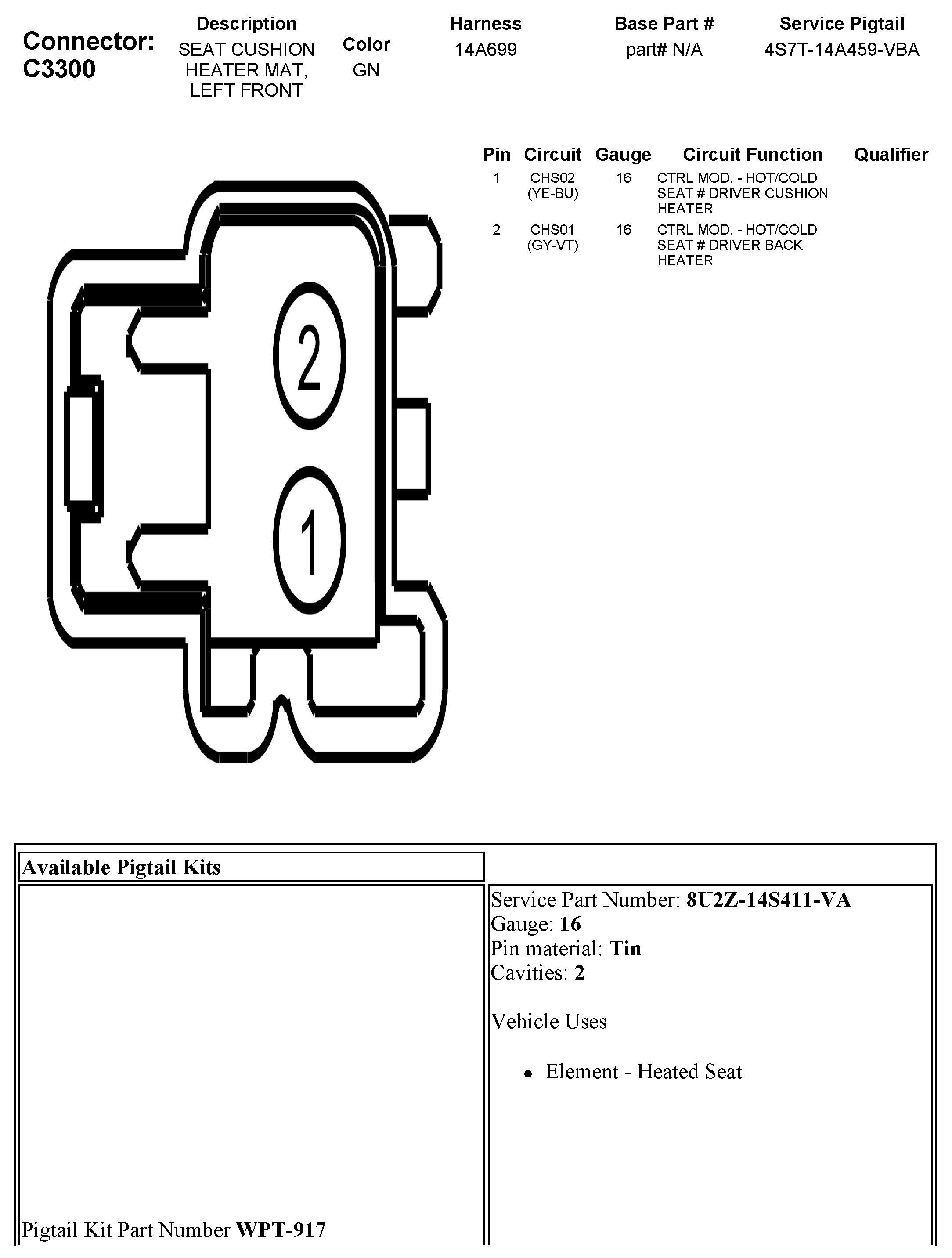 C3300 Seat Cushion Heater MAT, Left Front