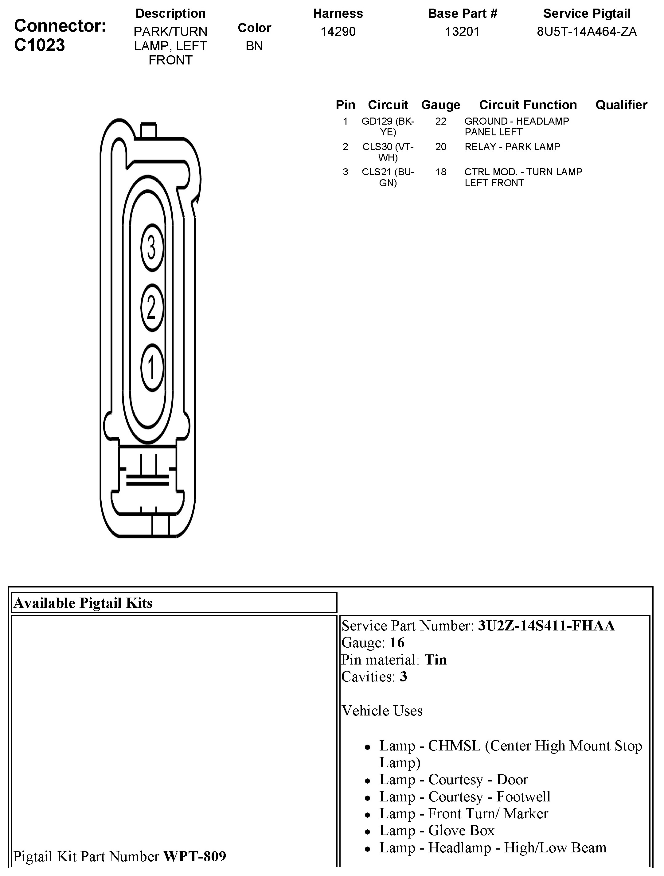 C1023 Park/Turn Lamp, Left Front
