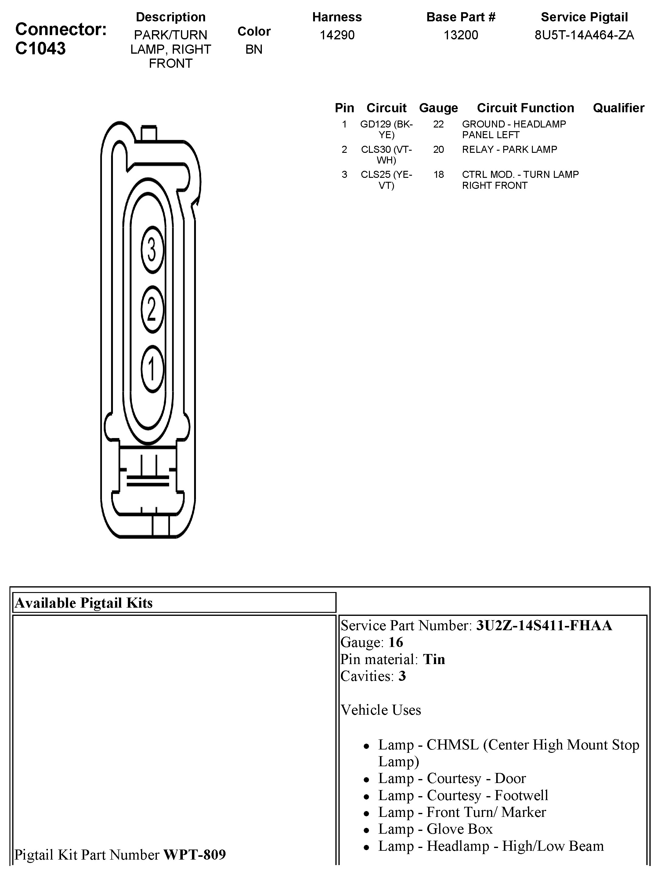 C1043 Park/turn Lamp, Right Front