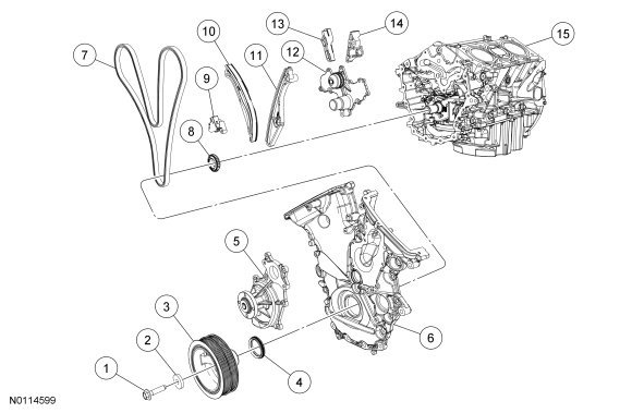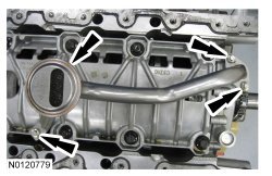 NOTICE: During engine repair procedures, cleanliness is extremely important. Any foreign material, including any material created while cleaning gasket surfaces that enters the oil passages, coolant passages or the oil pan, may cause engine failure.