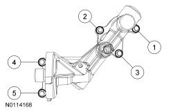 110. Using a new gasket, install the oil filter adapter and the 5 bolts and tighten in sequence shown.