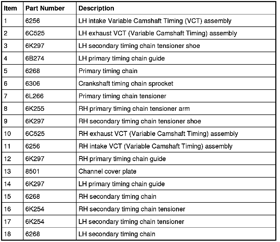 - There is 48 links in between the RH intake VCT (Variable Camshaft Timing) assembly colored link (1) and the LH intake VCT (Variable Camshaft Timing) assembly colored link (2).