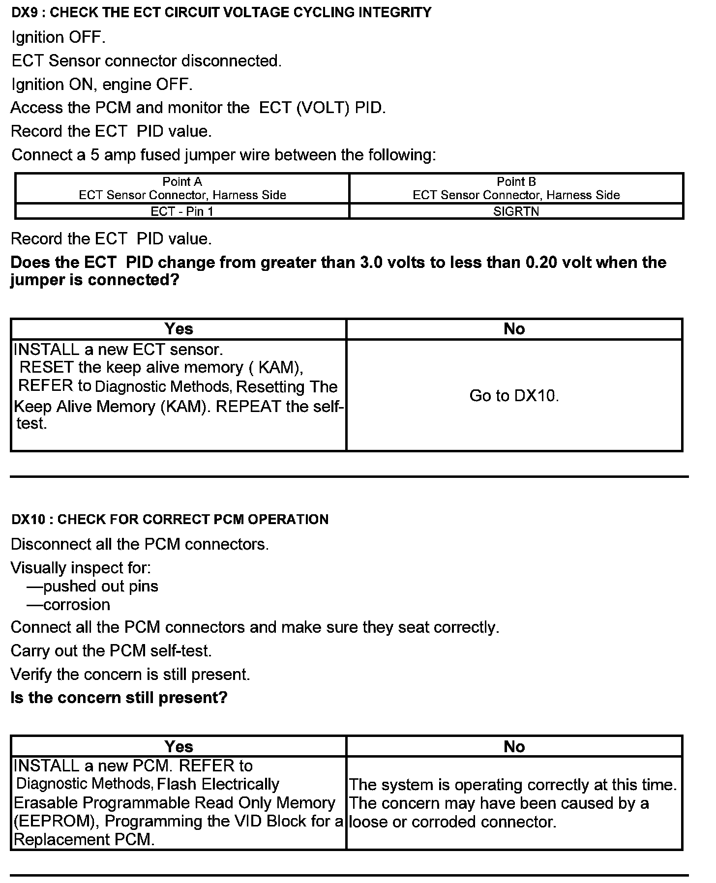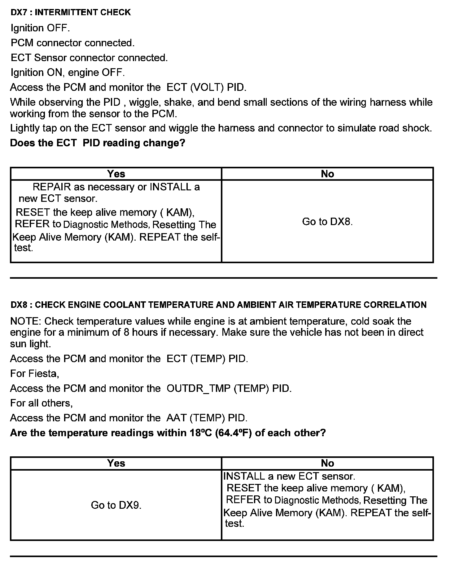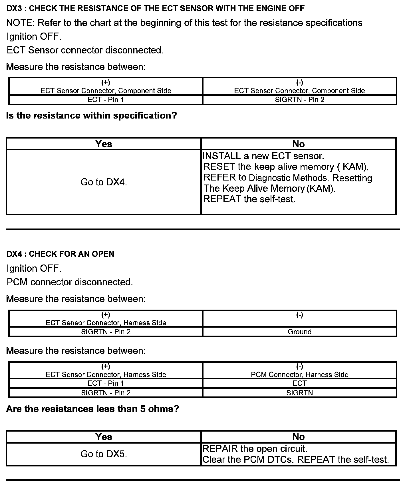 Test DX: Engine Coolant Temperature (ECT) Sensor