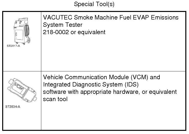 Introduce smoke from the VACUTEC Smoke Machine Fuel EVAP (Evaporative Emission) Emissions System Tester into the EVAP (Evaporative Emission) system and verify that smoke is exiting the fuel tank filler pipe neck area. For additional information, refer to the manufacturer's instructions.