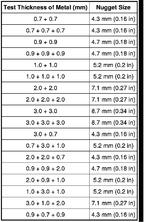 Weld Nugget Chart
