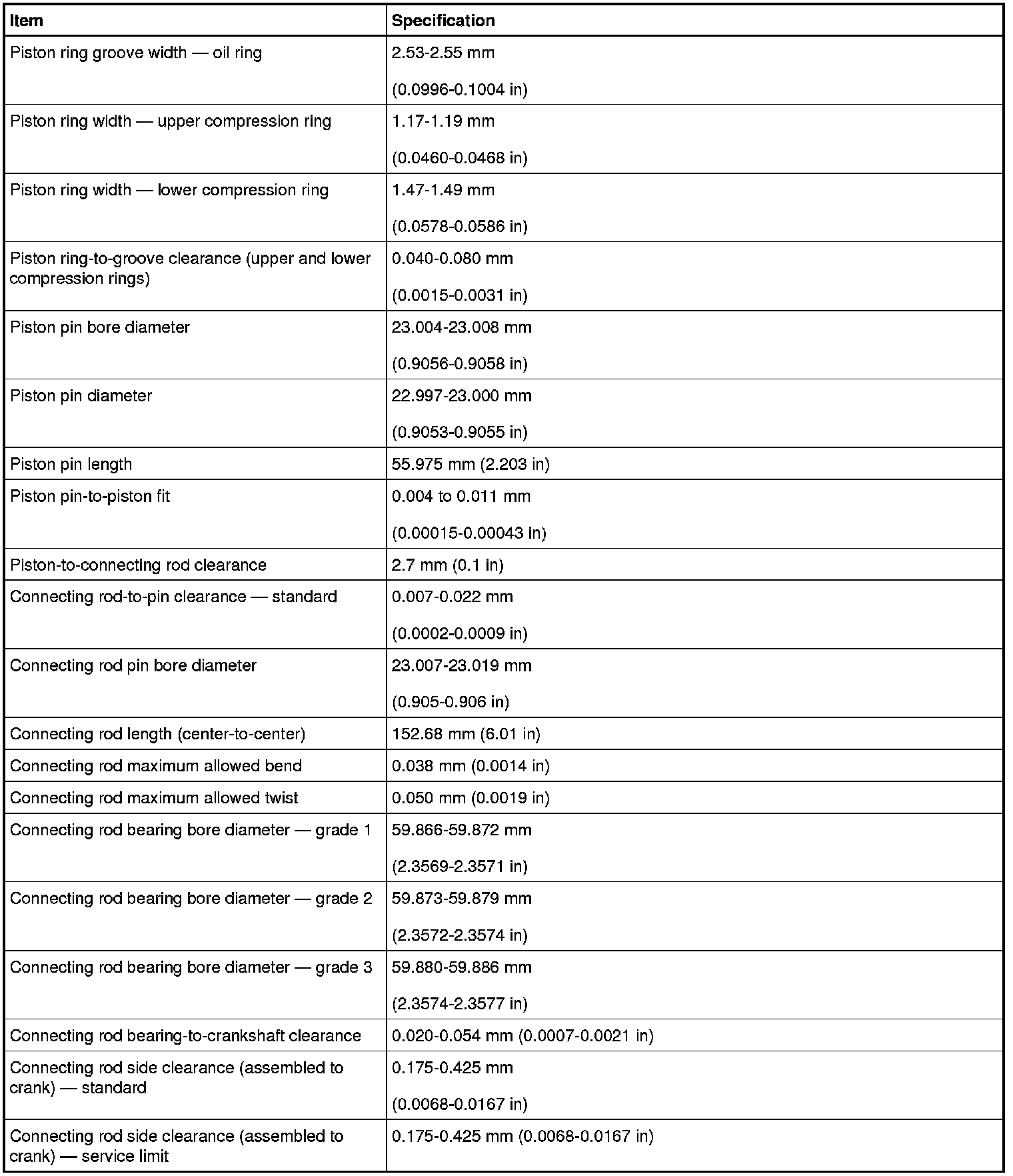 Engine Specifications