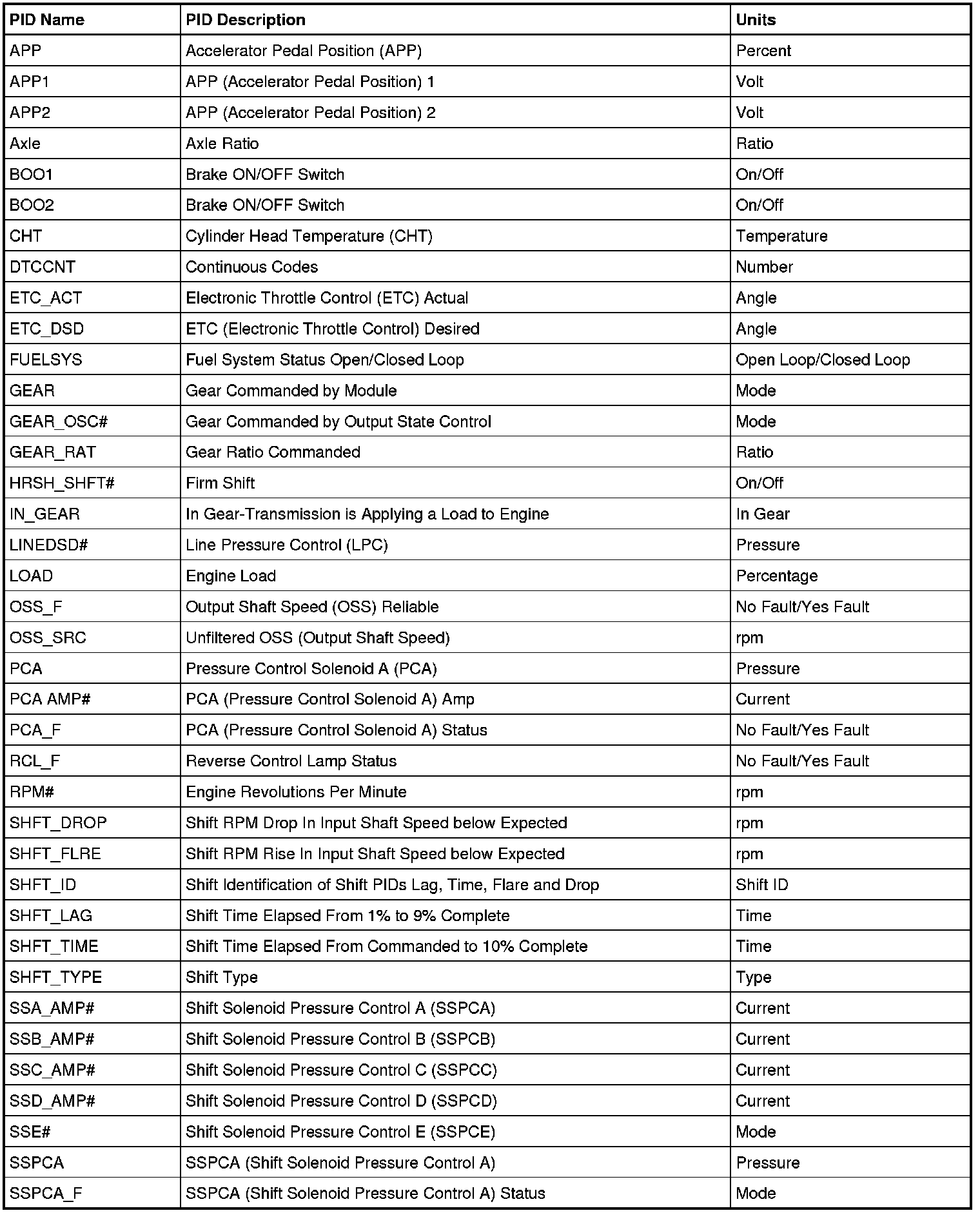Diagnostic PID Chart