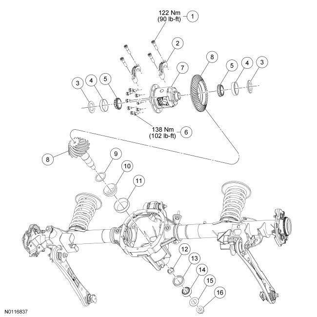 - Tighten to 122 Nm (90 lb-ft).