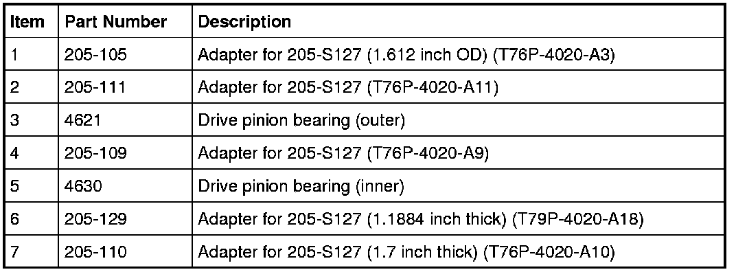 - After the correct drive pinion bearing adjustment shim thickness has been determined, remove all of the Adapters.