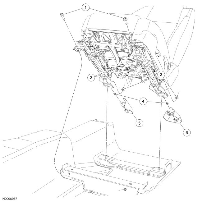 1. Position the seat to access all seat mounting fasteners and depower the SRS (Supplemental Restraint System). For additional information, refer to Supplemental Restraint System (SRS) Depowering and Repowering in the General Procedures portion of Restraints and Safety Systems &/or Air Bag Systems.