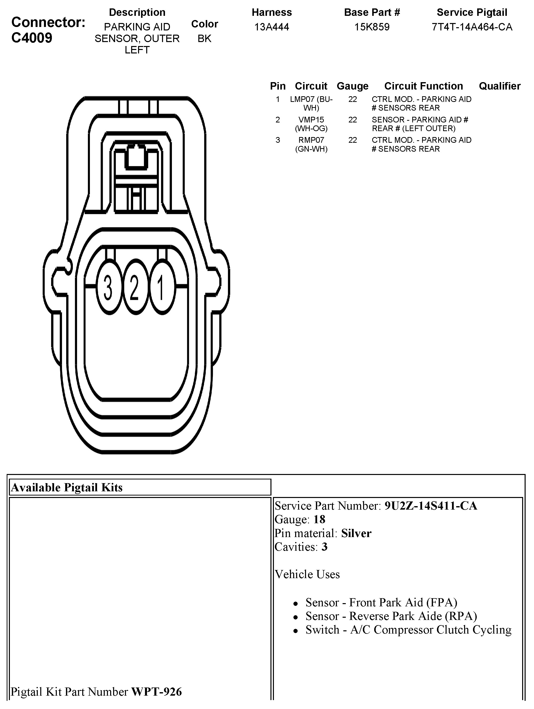 C4009 Parking Aid Sensor, Outer Left