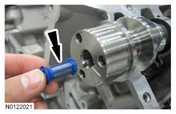 Install the VCT (Variable Camshaft Timing) system oil filter in the intake and exhaust camshafts.