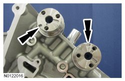 NOTE: Complete the following 3 steps on both the LH and RH primary timing chain tensioners.