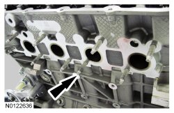 Install the 3 LH intake VCT (Variable Camshaft Timing) assembly bolts and the 3 LH exhaust VCT (Variable Camshaft Timing) assembly bolts.