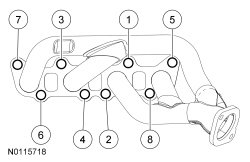 6. Install new gaskets, the RH exhaust manifold and 8 new nuts.