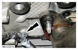 14. Attach the wiring harness retainer to the LH cylinder head.
