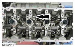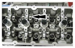16. NOTE: Lubricate the camshaft roller follower and hydraulic lash adjuster assemblies with clean engine oil prior to installation.