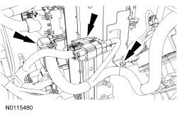 31. Connect the middle PCM electrical connector, the 16 pin electrical connector and attach the wiring harness retainers to the PCM bracket.