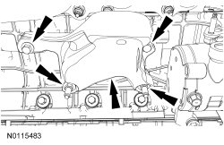 56. NOTE: The engine appearance cover rubber grommets may remain on the cover. If so, remove the grommets from the cover and install them on the intake manifold before installing the cover.