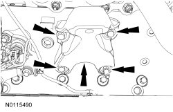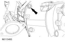 - Tighten the 5 installed transmission-to-engine bolts to 48 Nm (35 lb-ft).
