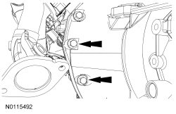 Install the 2 LH transmission-to-engine bolts.