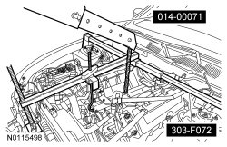 6. NOTICE: Do not position the legs of the Engine Support Bar on the fenders. Instead, the legs should be positioned on the body structure near the suspension strut tower. Failure to follow these instructions may result in body damage.