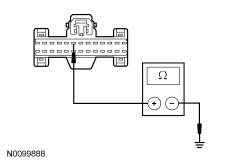 - Measure the resistance between the IPC (Instrument Panel Cluster) C220-8, circuit GD116 (BK/VT) harness side and ground.