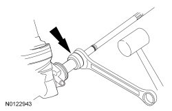 NOTICE: The inner tie-rod ball joint grease is not compatible with water. Water trapped in the grease may damage the joint.