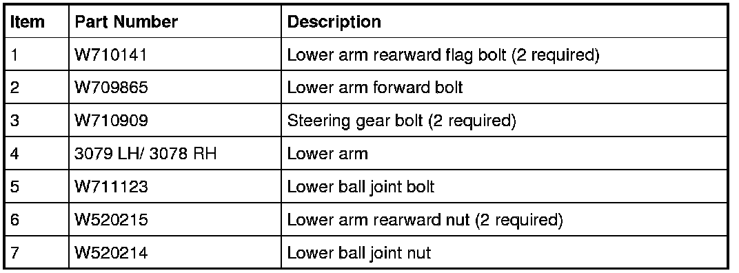 1. NOTE: To ease installation, the position of the lower arm rearward nut and flag bolt may be reversed to allow installation of the nut from underneath the vehicle.