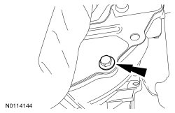4. NOTICE: If the engine appearance cover is not removed it will be damaged when lowering transmission.