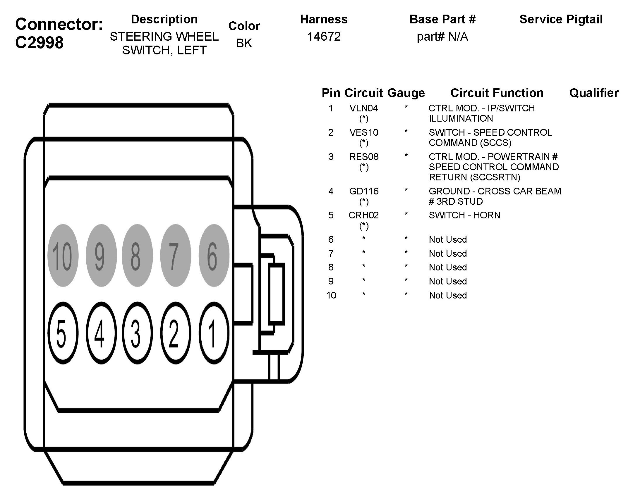 C2998 Steering Wheel Switch, Left