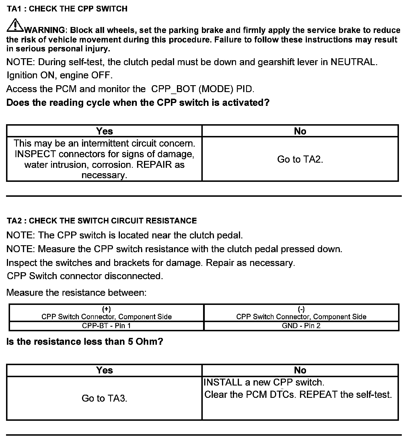 Test TA: Clutch Pedal Position (CPP#2) Switch