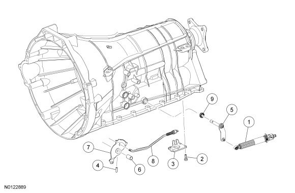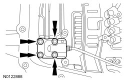 2. NOTICE: To prevent selector lever cable damage, do not apply force to the selector lever cable between the manual control lever and the selector lever cable bracket.