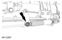 NOTE: When installing the selector lever cable end, make sure that the selector lever cable end is correctly installed onto the manual control lever. Pull back on the selector lever cable end to make sure that the selector lever cable end is securely installed onto the manual control lever.