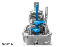 8. Install the Rear Flange Holding Tool and the Drive Pinion Flange Holding Tool. Position the shift shaft into 4th gear.