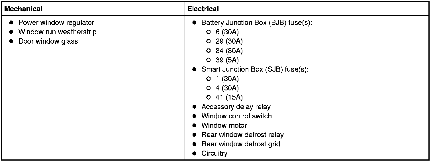 9. If the DTCs retrieved are related to the concern, go to the Body Control Module B (BCM-B) DTC Chart, Smart Junction Box (SJB) DTC Chart or HVAC Module DTC Chart Windows and Glass. For all other DTCs, refer to Body Control Systems.