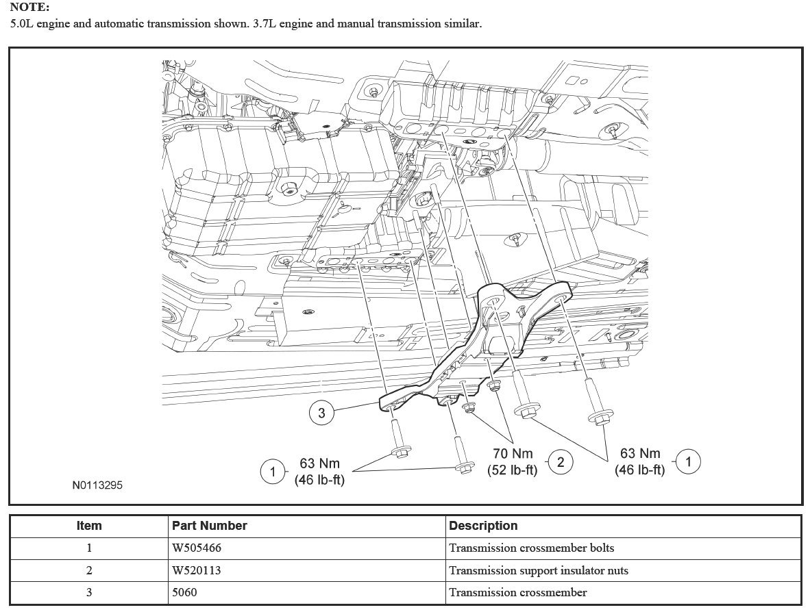 Crossmember - Transmission, 3.7L and 5.0LRemoval