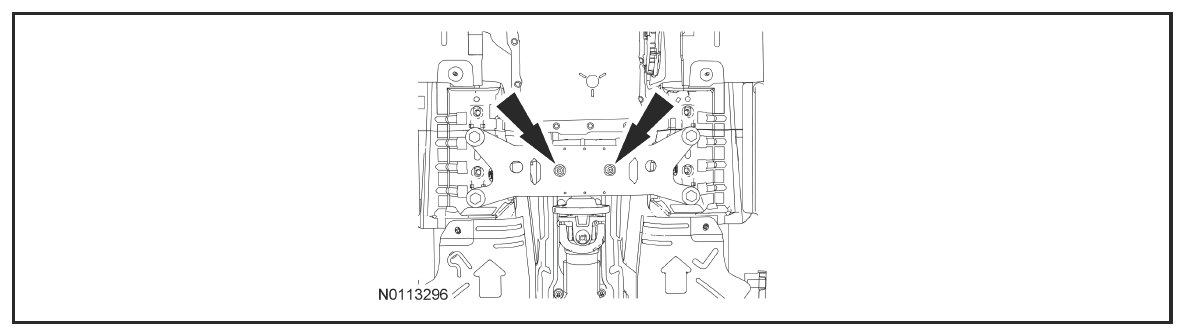 6. With the transmission crossmember neutralized, tighten the transmission crossmember bolts.