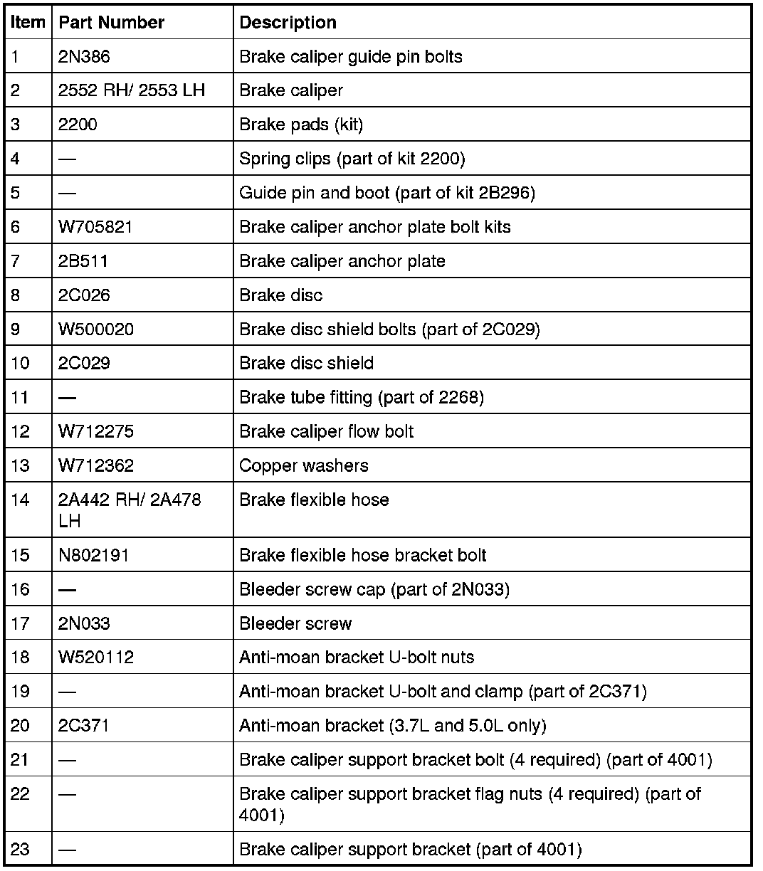 Rear Disc Brake System - Exploded View