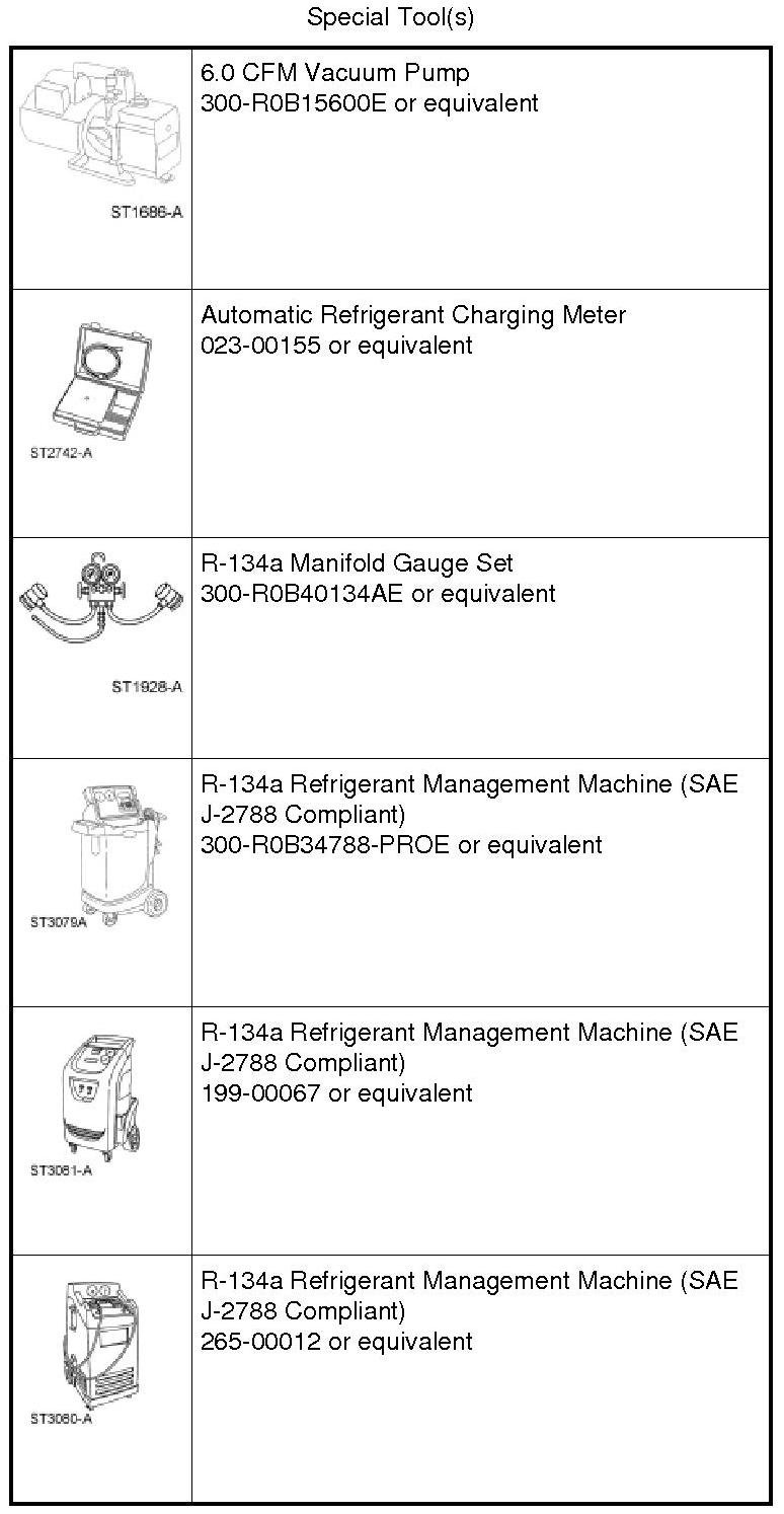 NOTE: Ford Motor Company recommends the use of R-134a refrigerant management equipment that meets the requirements of the SAE J2788 standard.