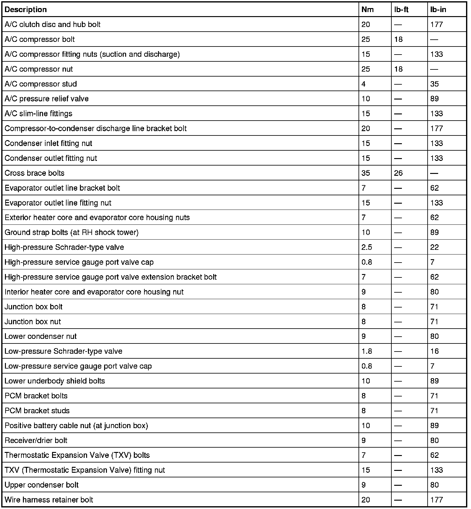 Torque Specifications