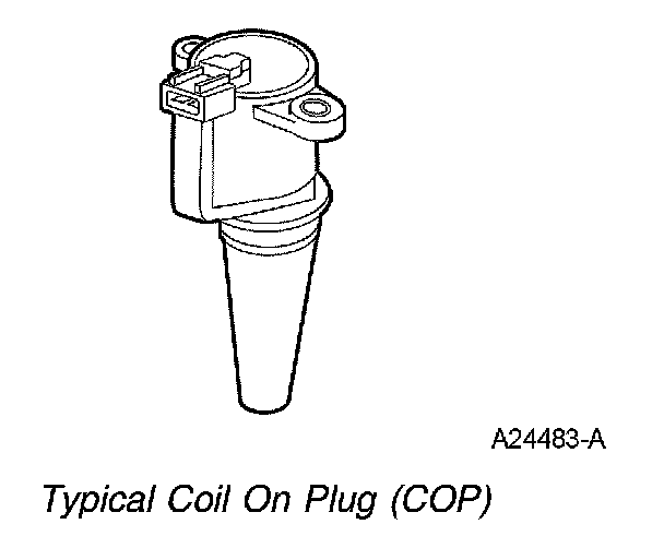 The COP ignition operates similar to a standard coil pack ignition except each plug has 1 coil per plug. The COP operates in engine crank, engine running and camshaft position failure mode effects management (FMEM) modes. The COP eliminates the need for secondary spark plug wires which improves reliability. Currently there are two types of COP in use today. The first type of COP is a 2 circuit system that consists of the coil and boot that is installed directly on top of the spark plug which is fired by a driver located in the PCM. The second type COP is a 3 circuit system with the driver integrated in the COP assembly that is triggered when the PCM supplies the signal to fire. This configuration eliminates the need for high current lines from the PCM to the COP. For additional information, refer to Ignition Systems.