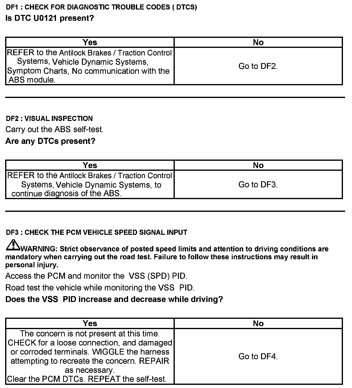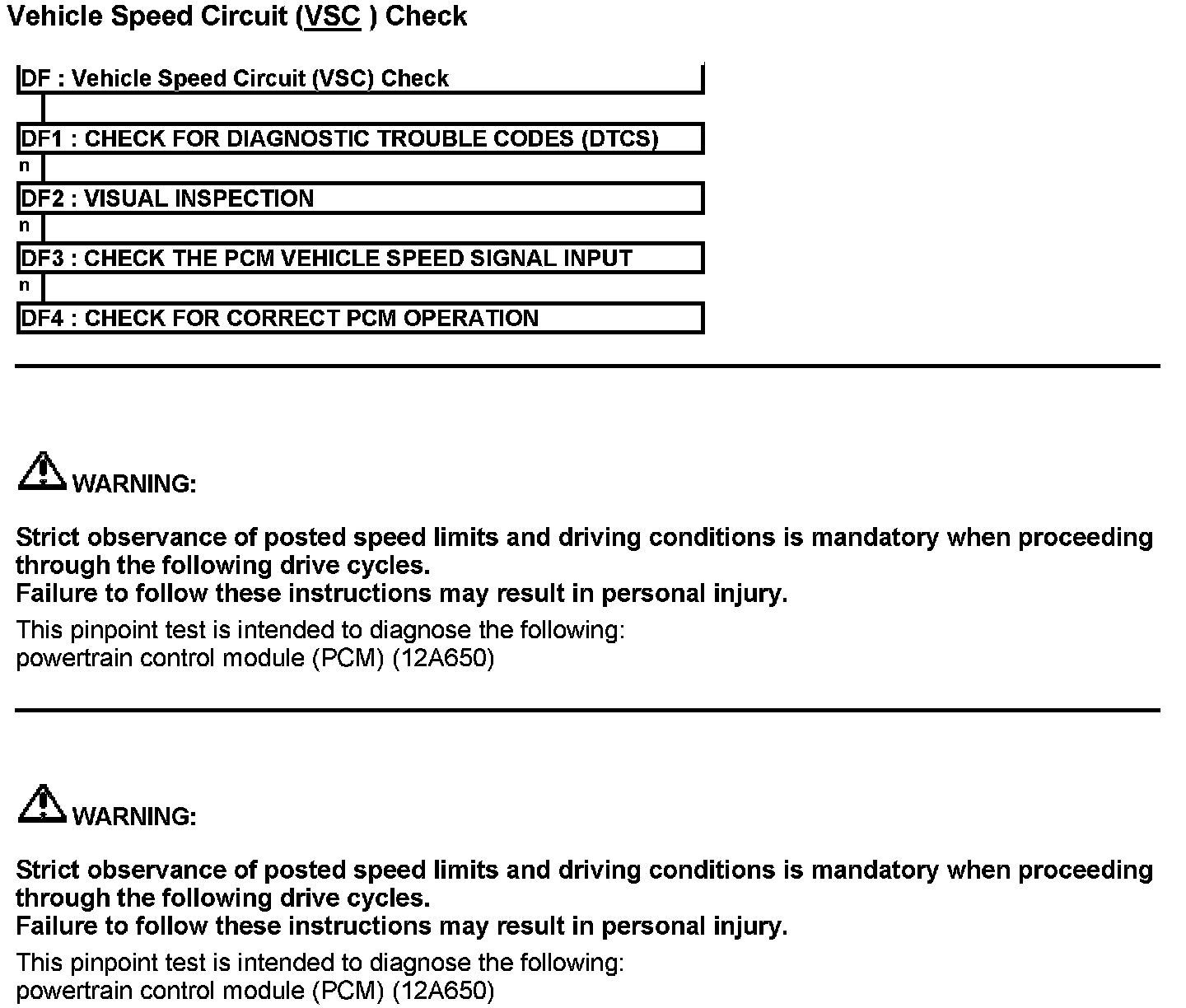 Test DF: Vehicle Speed Circuit (VSC) Check