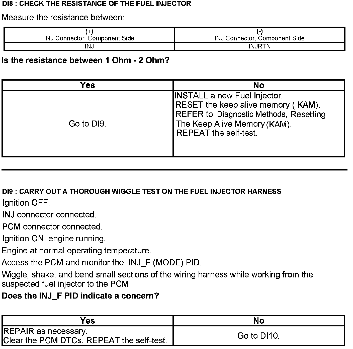 Test DI: Direct Fuel Injection Fuel Injector