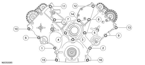 Stage 2: Bolts 15 and 16 to 50 Nm (37 lb-ft).