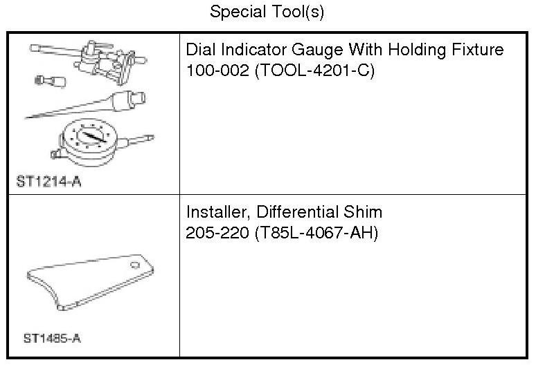 10. To establish differential bearing preload, increase both LH and RH differential bearing shim size by the thickness shown.