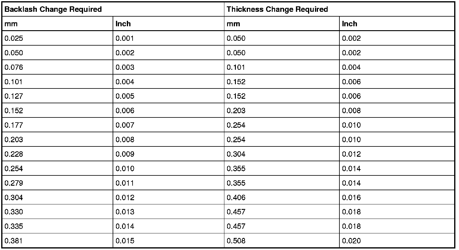 - If a zero backlash condition occurs or the backlash is not within specification, proceed to Step 3.