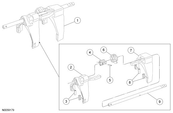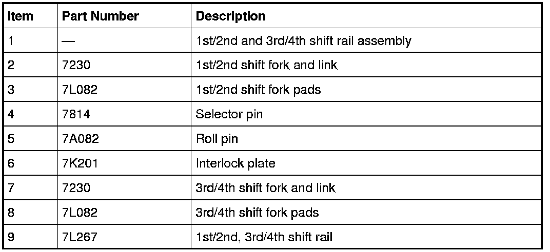 - Check the rails, shift forks, shift levers and shift links for wear or damage. Install new components as necessary.